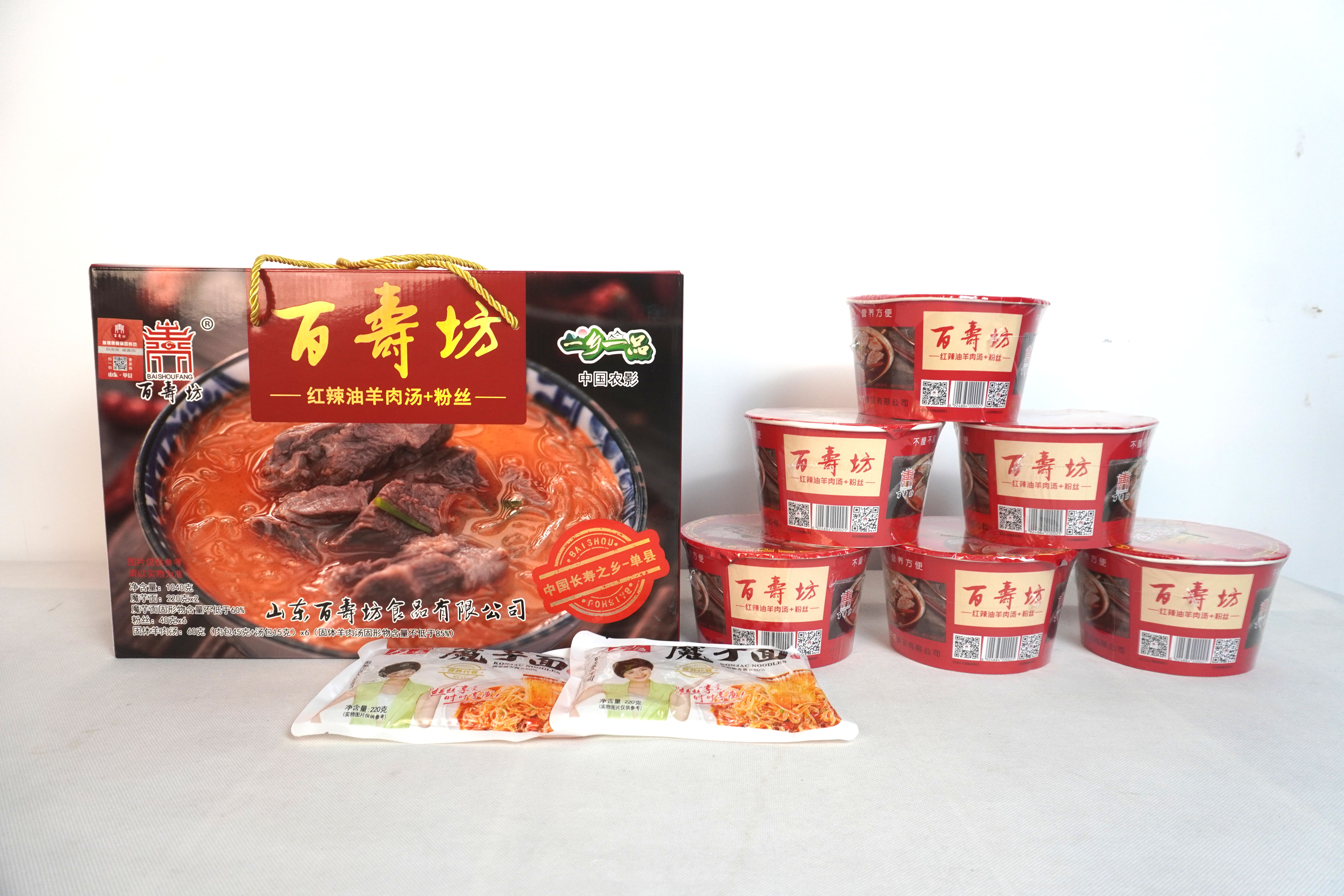 百寿坊羊肉汤系列食品是公司研制的具有独特风味、营养方便快捷的名吃食品。该系列产品风味独特、真空包装、携带方便,深受消费者喜爱。