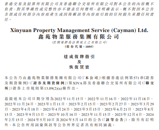 2024年6月11日,鑫苑服务刊发公告称,已达成复牌指引规定的所有要求,于6月12日起在港交所恢复股票买卖。