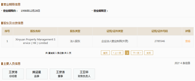 国家企业信用信息公示系统显示,鑫苑科技服务集团有限公司成立于1998年,注册资本5000万元人民币,法定代表人为王彦涛。