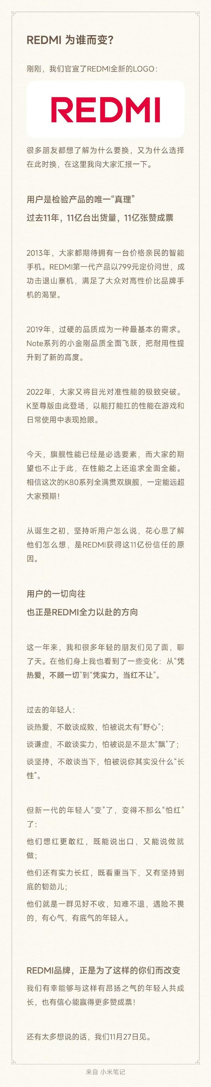 樊振东代言!REDMI K80系列官宣,品牌换新LOGO,小米王腾解释为何换?
