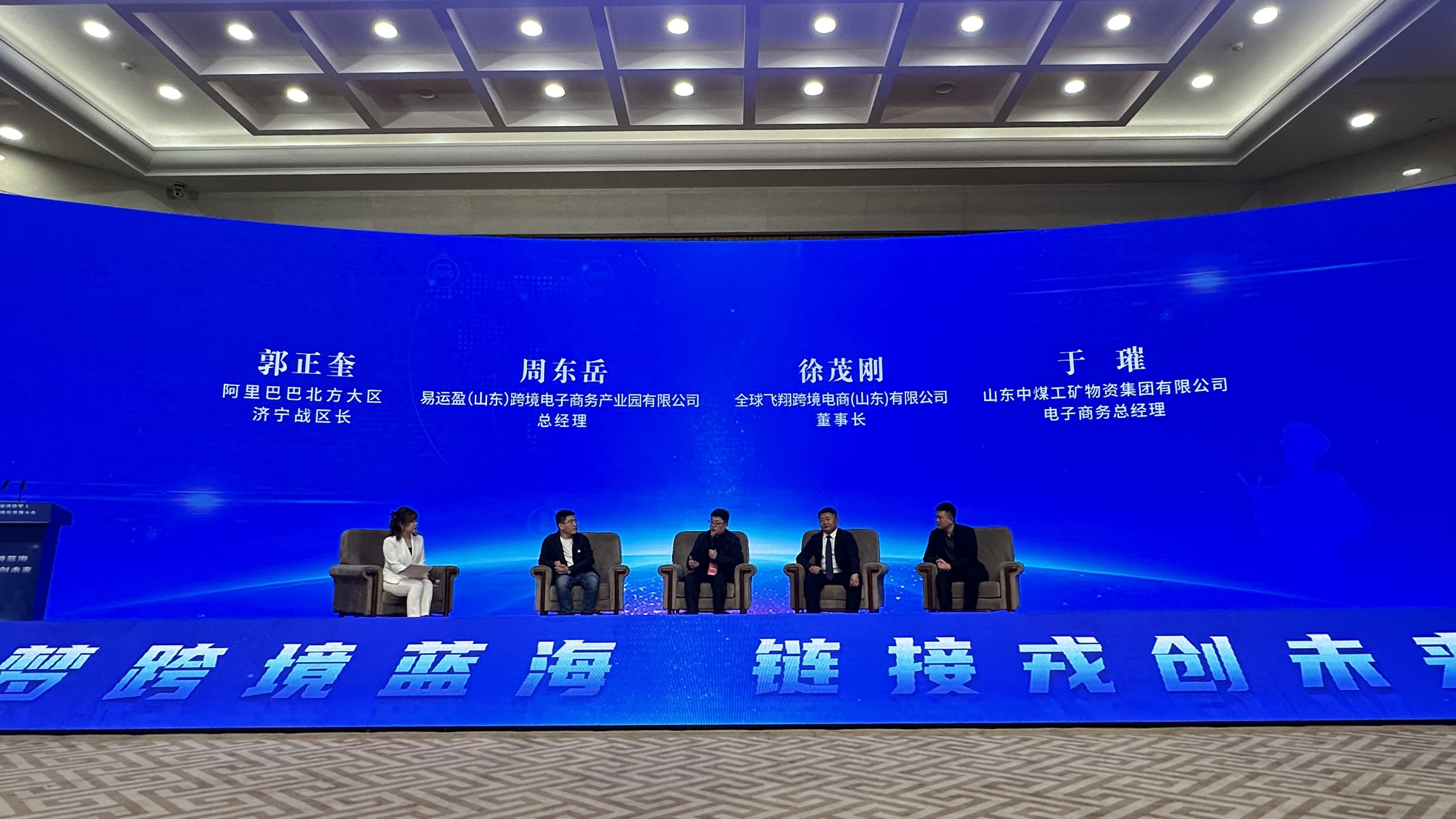 活动过程中,现场有许多企业纷纷想参与到跨境电商的行业中来,让贸易出海。为此,大会特别设置了圆桌对话会,邀请阿里巴巴北方大区济宁战区长郭正奎、易运盈(山东)跨境电子商务产业园有限公司总经理周东岳、全球飞翔跨境电商(山东)有限公司董事长徐茂刚、山东中煤工矿物资集团有限公司电子商务总经理于璀等四位平台和企业专家,与现场的战友们进行面对面交流分享。