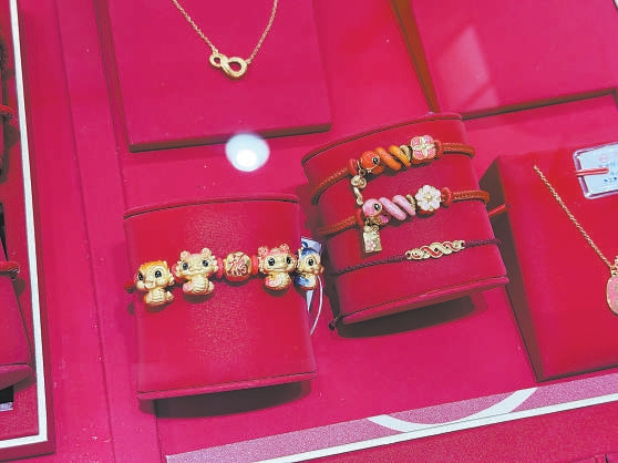 “金蛇送福,好‘巳’多多。”在菜百首饰总店一层大厅,蛇年贺岁金条、蛇年生肖纪念币、蛇年限定转运珠、项链坠等多款蛇年贺岁产品吸引了众多市民选购。十余款新上市的转运珠、小项坠均以“蛇”为设计元素。金灿灿的卡通小蛇配上福字、小葫芦、小苹果等造型,既憨态可掬又有美好寓意。
