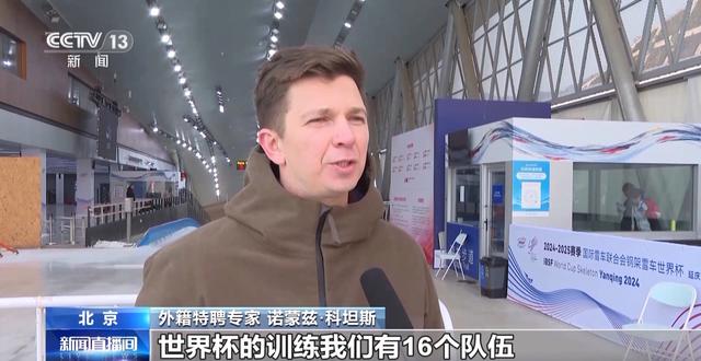 外籍特聘专家 诺蒙兹·科坦斯:世界杯的训练,我们有16个队伍、62个运动员。赛道非常好,所有的工作人员都非常好地工作,运动员来这里也是非常高兴。他们这个周末开始比赛,所以他们现在有一些训练准备。