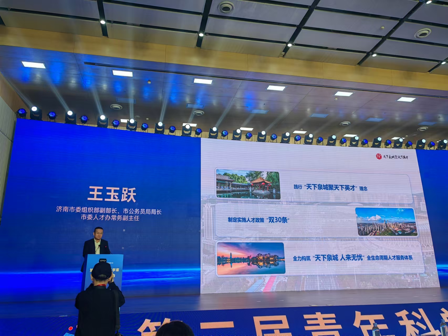 大会现场,济南市委组织部副部长、市公务员局局长、市委人才办常务副主任王玉跃还推介了济南市有关人才政策。