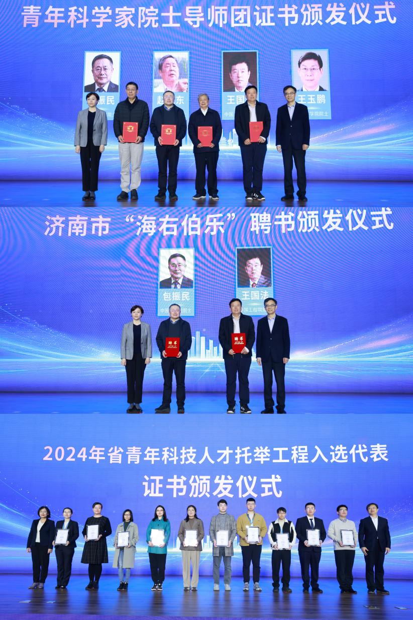 开幕式上,为王国法、包振民等院士颁发了“海右伯乐”聘书,为2024年度山东省青年科技人才托举工程人选代表颁发了证书。