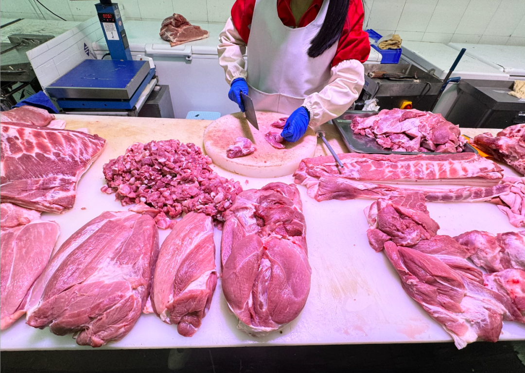 记者在一家摊位前询问得知,当天排骨14元/斤,五花12.5元/斤,里脊13元/斤,和两个月前相比都下降了几毛钱。因为价格持续下降,再加上天气越来越冷,最近买的人越来越多,一天能卖10几头猪。