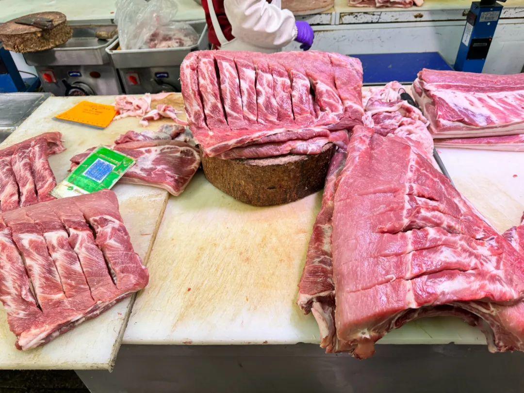 记者又来到另一家摊位,商户介绍,她家有两种排骨,一种20元/斤,一种15元/斤,而白条猪则需要提前一天订购,前一天的价格为10.5元/斤,最近几天降了一两毛左右。