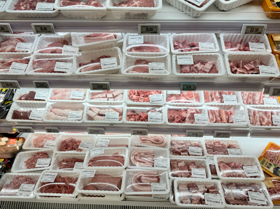 那么,生鲜超市的价格又如何呢?11月21日,记者又来到北京市海淀区中关村南大街的一家七鲜超市,这里的冷藏柜上摆放着各种猪肉。其中,带皮腿肉16.5元/斤,精瘦肉21.5元/斤,带皮五花条23.6元/斤,猪棒骨14.9元/斤。记者刚到这里时,就有两拨客人过来询问猪肉价格。该店的售货员表示,自己也观察到近期的猪肉价格都在逐日下跌。