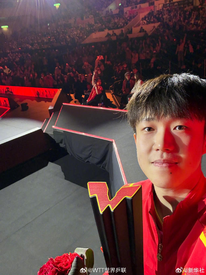 赛后,@WTT世界乒联 发布总决赛冠军王楚钦自拍。
