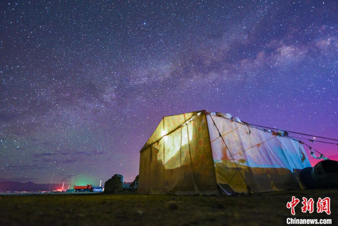 2018年5月20日,西藏当雄县牧民帐篷上的银河。中新社记者江飞波 摄