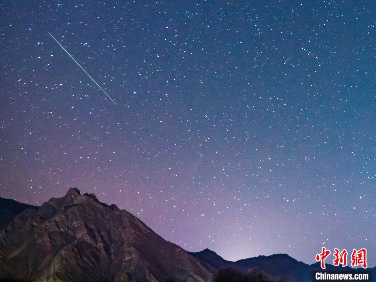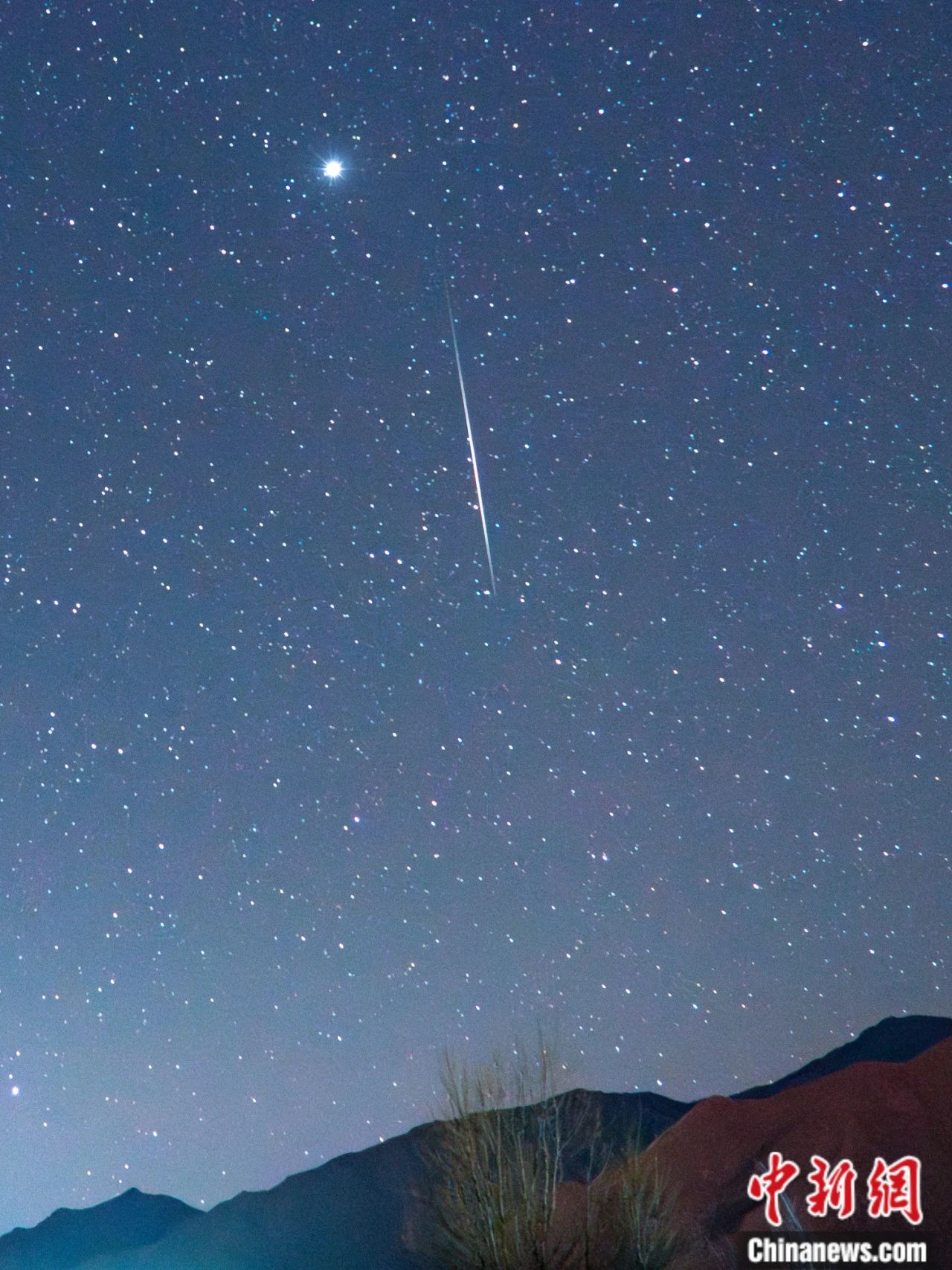 2022年12月14日晚,拉萨河谷上空的流星。中新社记者江飞波 摄