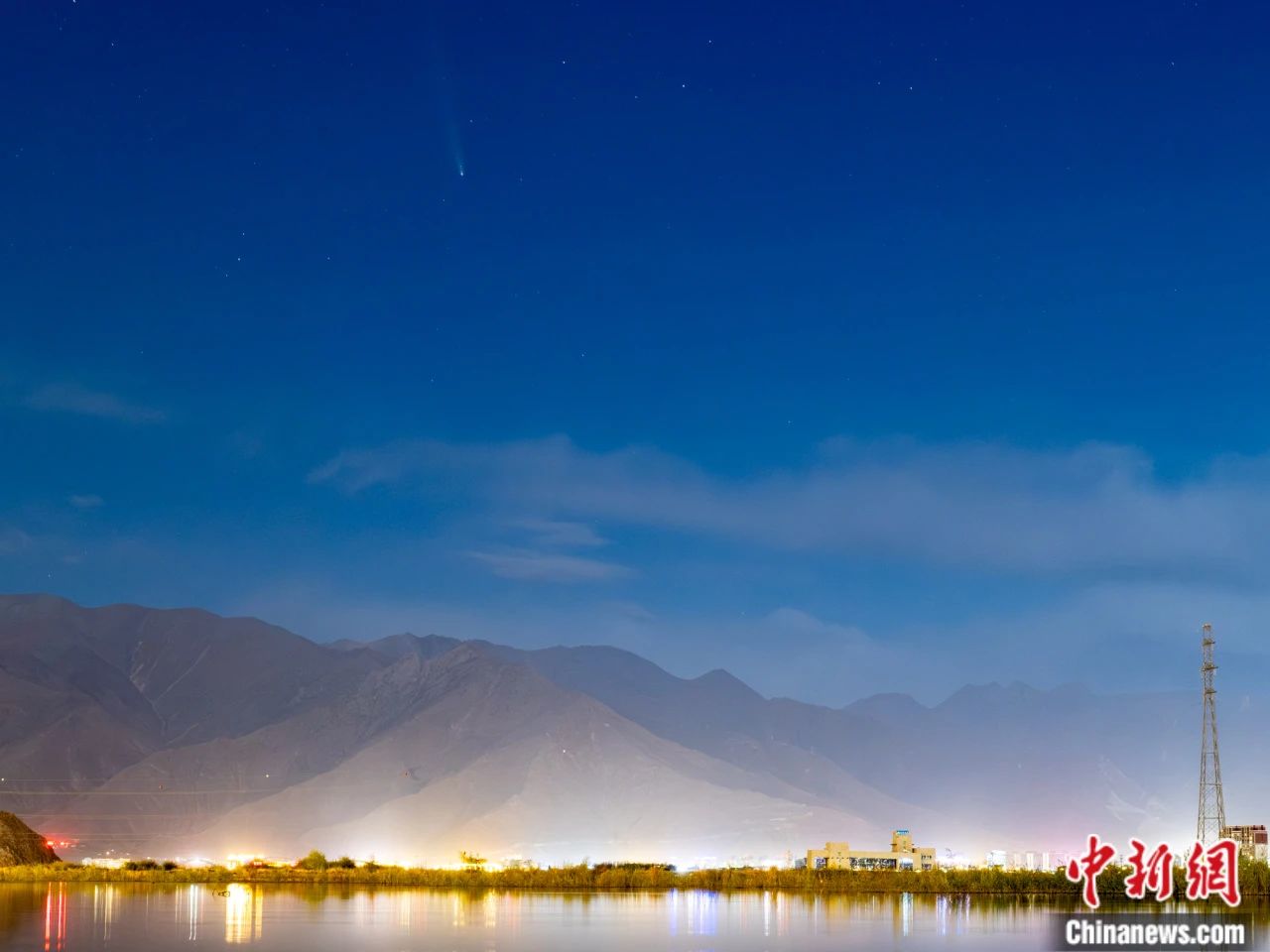 10月17日晚,紫金山—阿特拉斯彗星划过拉萨河上空。中新社记者江飞波 摄