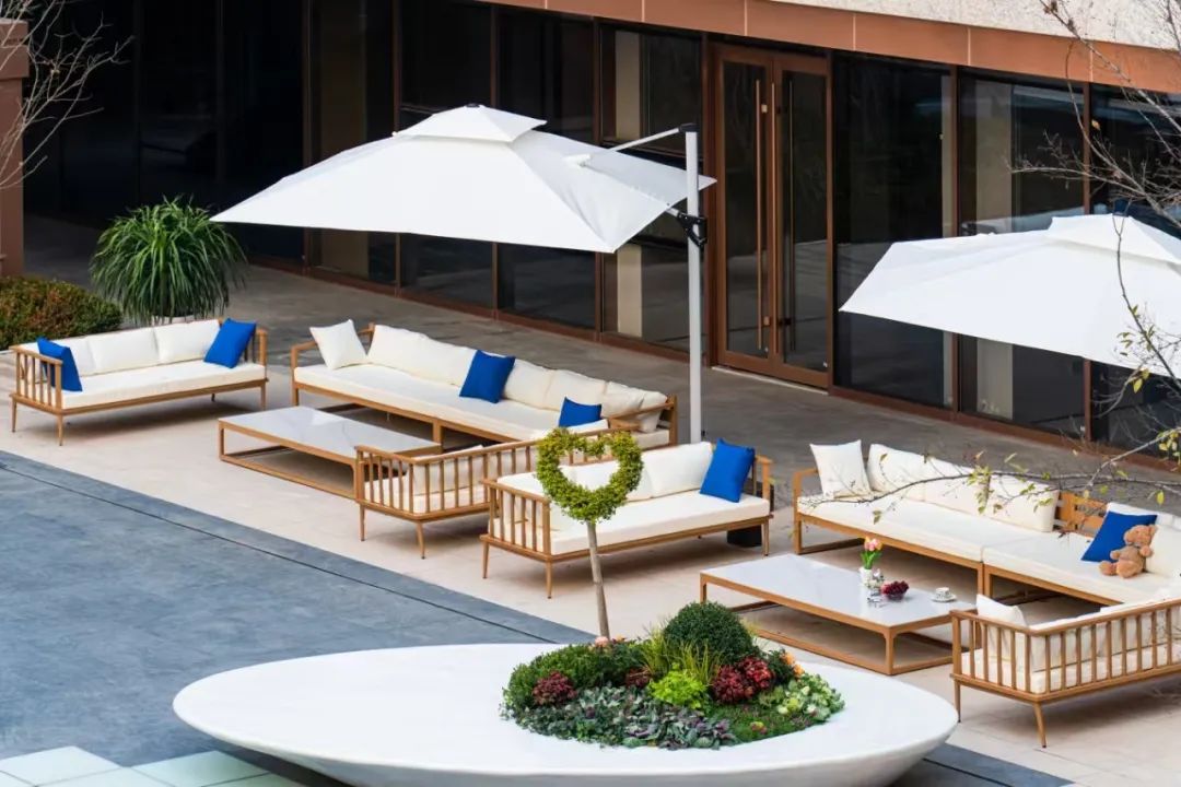下沉庭院增加户外沙发组合及花坛,优化造型植物种植;地库出入口吊顶提升品质,增加灯光亮化(施工中)......为园区美好添色。