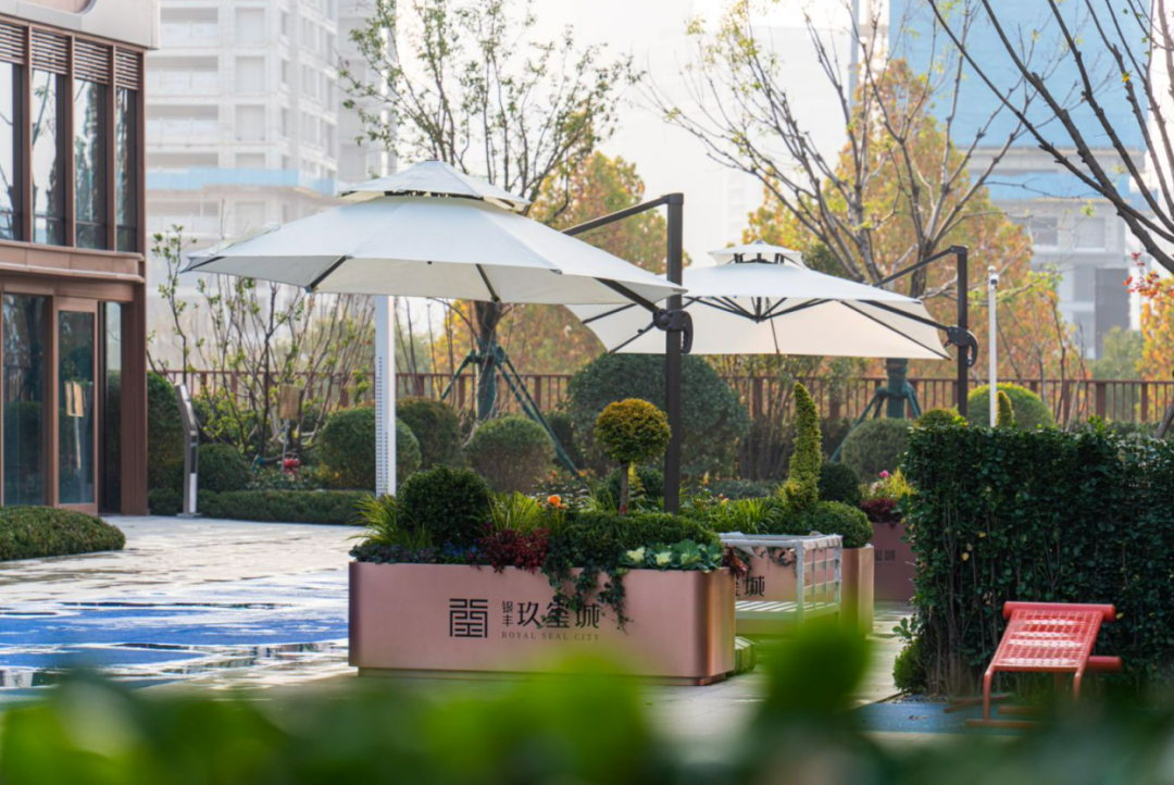 围栏增加造型,围栏绿植增加进行美化;楼栋之间增加至每个单元一组花箱桌椅组合,绿化升级组团造型,丰富中层绿植。