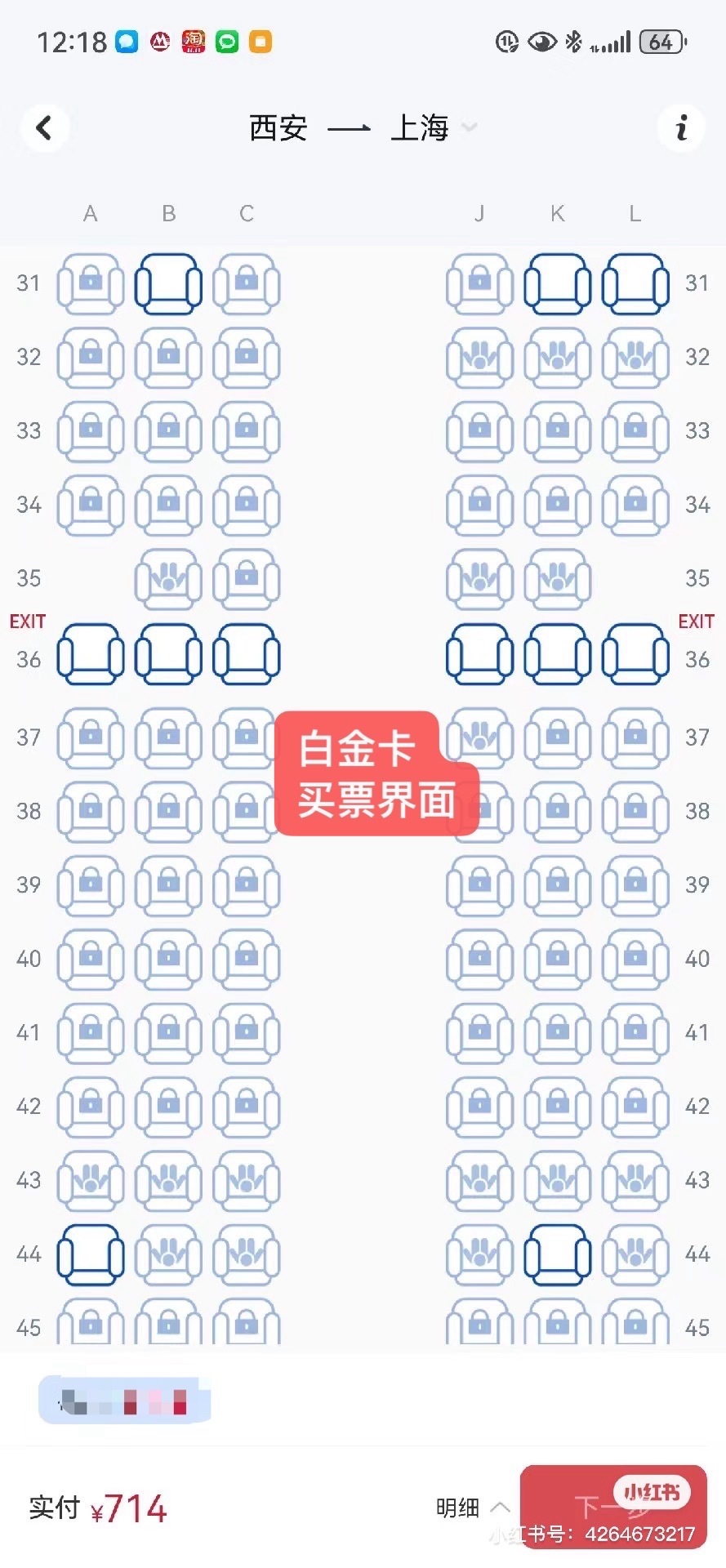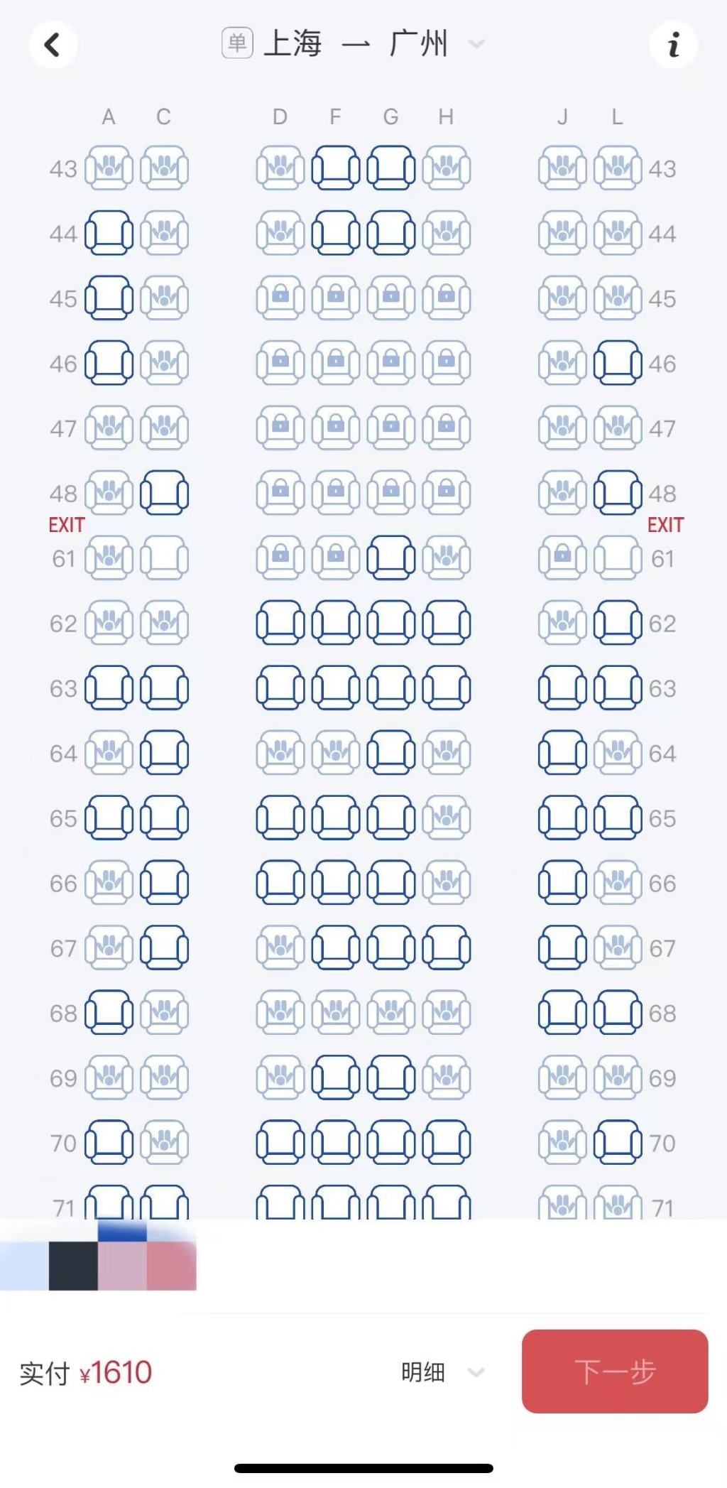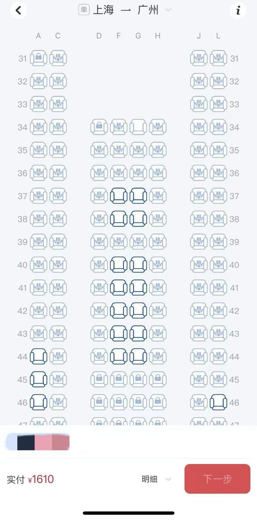 乘客线上值机发现前排座位“被锁”,线上选座或与会员等级有关