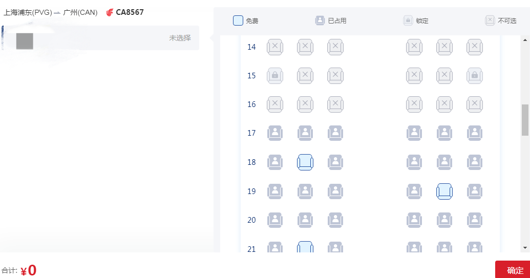 国航选座画面