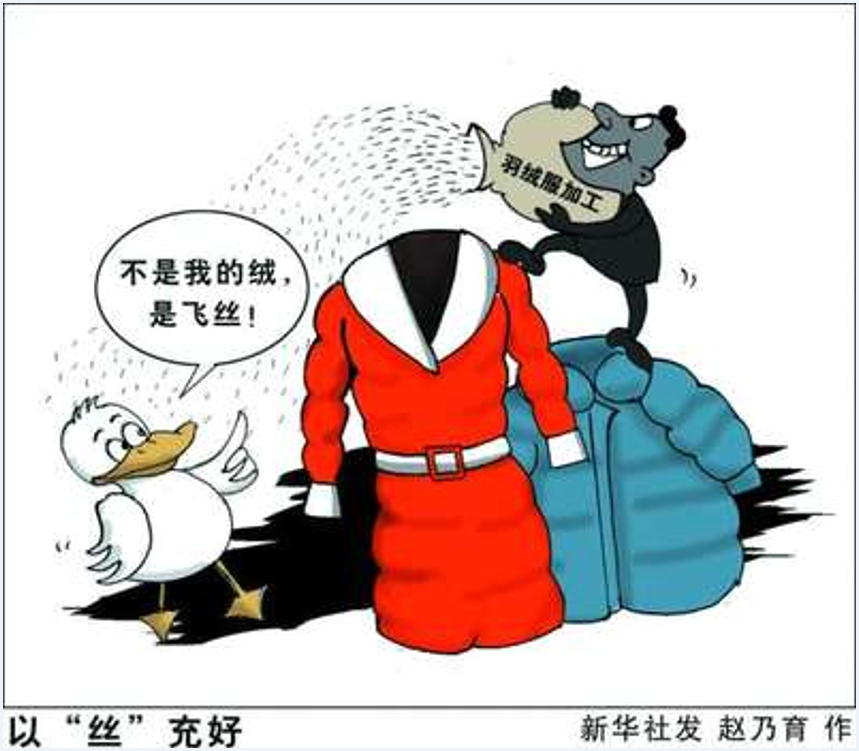 以次充好、以假乱真,存在着巨大的成本差异,厂家本着能省则省的原则,不惜铤而走险,大量生产充斥着假绒的劣质羽绒服。