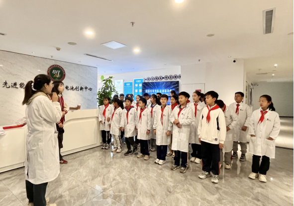 为深入贯彻落实《关于加强新时代中小学科学教育的工作意见》中要创造条件丰富内容、拓展科学实践活动,用好社会大课堂的要求,2024年11月17日,北京理工大学前沿技术研究院先进能源材料及智能电池创新中心承办了济南市青少年宫“红领巾爱祖国”2024年济南市好队长学校主题培训活动,接待了来自济南市民生大街小学、青龙街小学、燕柳小学、开元外国小学、胜利大街小学等全市二十七所小学的29名好队长(优秀少先队骨干),开启了一场“智慧新能源之旅”科技研学实践活动。