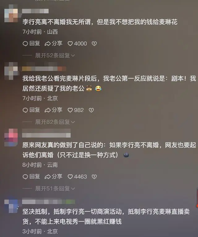 11月26日,江苏淮安涟水滨河吾悦广场宣布,李行亮将于12月21日亲临现场献唱,评论区几乎瞬间被“抵制”刷屏,许多网友认为这对夫妻利用婚姻问题赚取流量,节目中的真真假假让人感到不适。