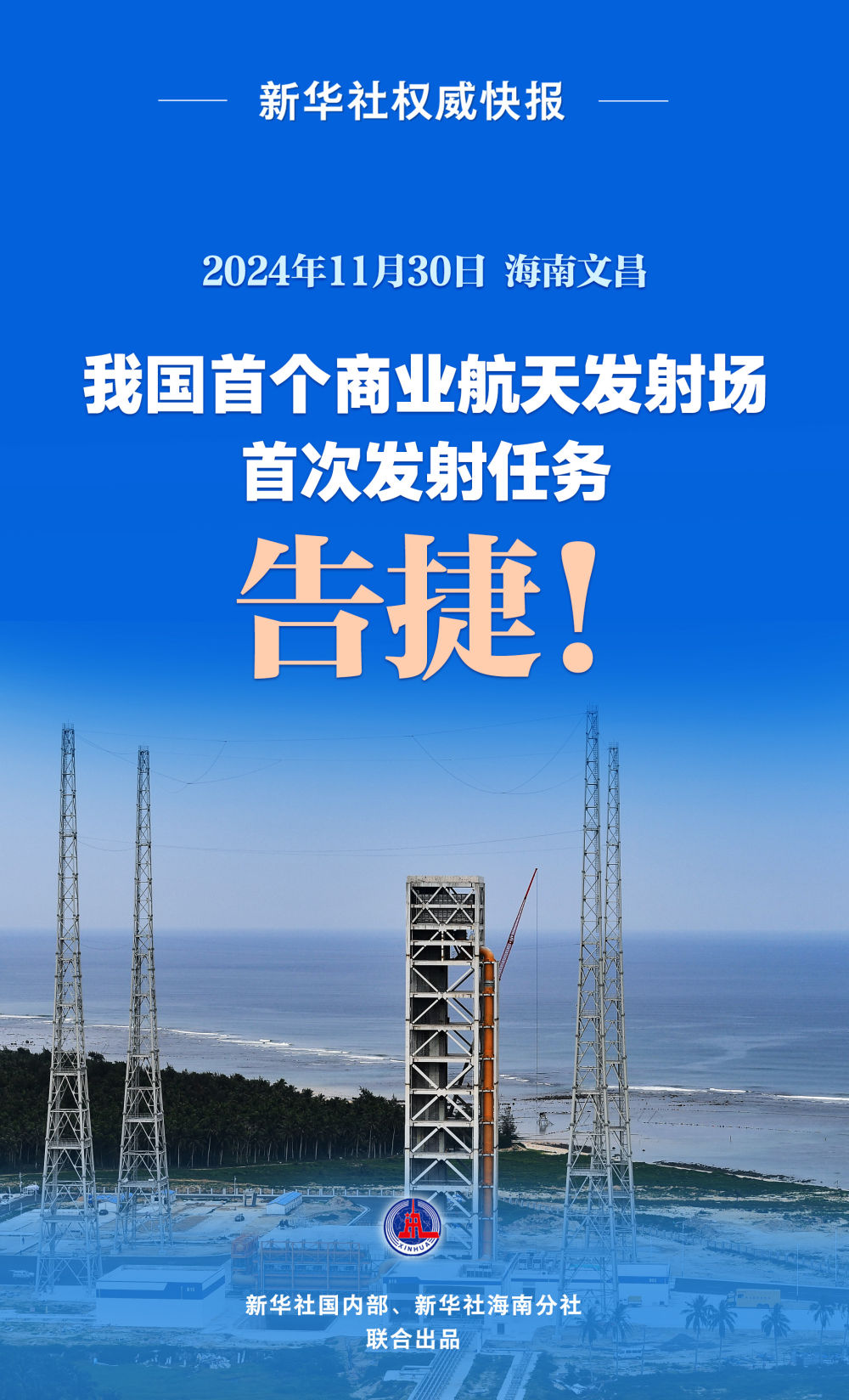 我国首个商业航天发射场首次发射任务告捷 热闻区 2024-11-30 1.1万 11月30日晚间,长征十二号运载火箭在海南商业航天发射场点火起飞,随后,火箭顺利将卫星互联网技术试验卫星、技术试验卫星03星送入预定轨道,我国首个商业航天发射场首次发射任务告捷。 (新华社) 责任编辑:袁野