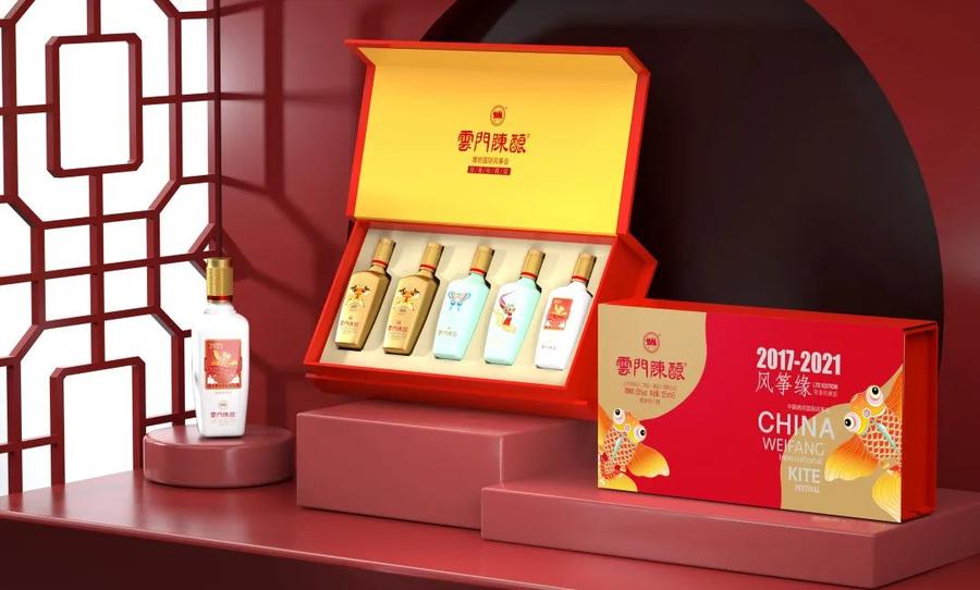 “云门陈酿·风筝缘”礼盒,将2017年至2021年5年间的风筝缘产品以5瓶125毫升的雅致小酒经典再现,通过产品文化、企业文化、地域文化的深度融合,塑造了一款兼具纪念意义和收藏价值,且能够代表潍坊地域文化特色的馈赠佳品。