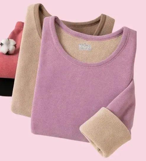 所以,复合加绒通常是将一层普通面料与一层经过拉毛起绒处理的聚酯纤维(即“涤纶”)面料复合,形成类似珊瑚绒、摇粒绒、羊羔绒的质感。这样的衣服不仅轻薄,也有不错的保暖性,比如保暖内衣加绒系列。
