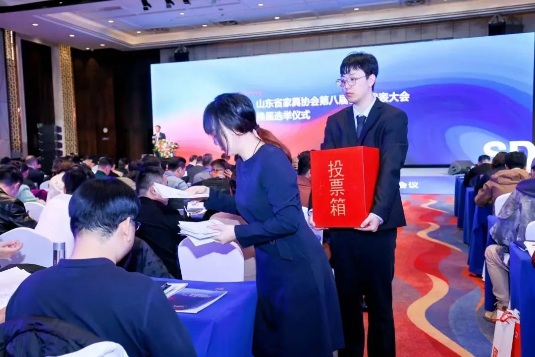 山东省家具协会监事、山东工艺美术学院应用设计学院副院长薛坤向大会作第七届监事财务工作报告,山东省委社会工作部二处副处长甘凌燕宣读了中共山东省委社会工作部关于同意山东省家具协会负责人人选名单的批复。山东省家具协会执行会长韩庆生作章程修改说明,并在会议予以通过。随后,韩会长主持了山东省家具协会第八届理事会的无记名投票选举,选举产生了新一届理事会成员。山东省家具协会监事、山东工艺美术学院应用设计学院副院长薛坤在选举环节监票,并宣读选举结果。