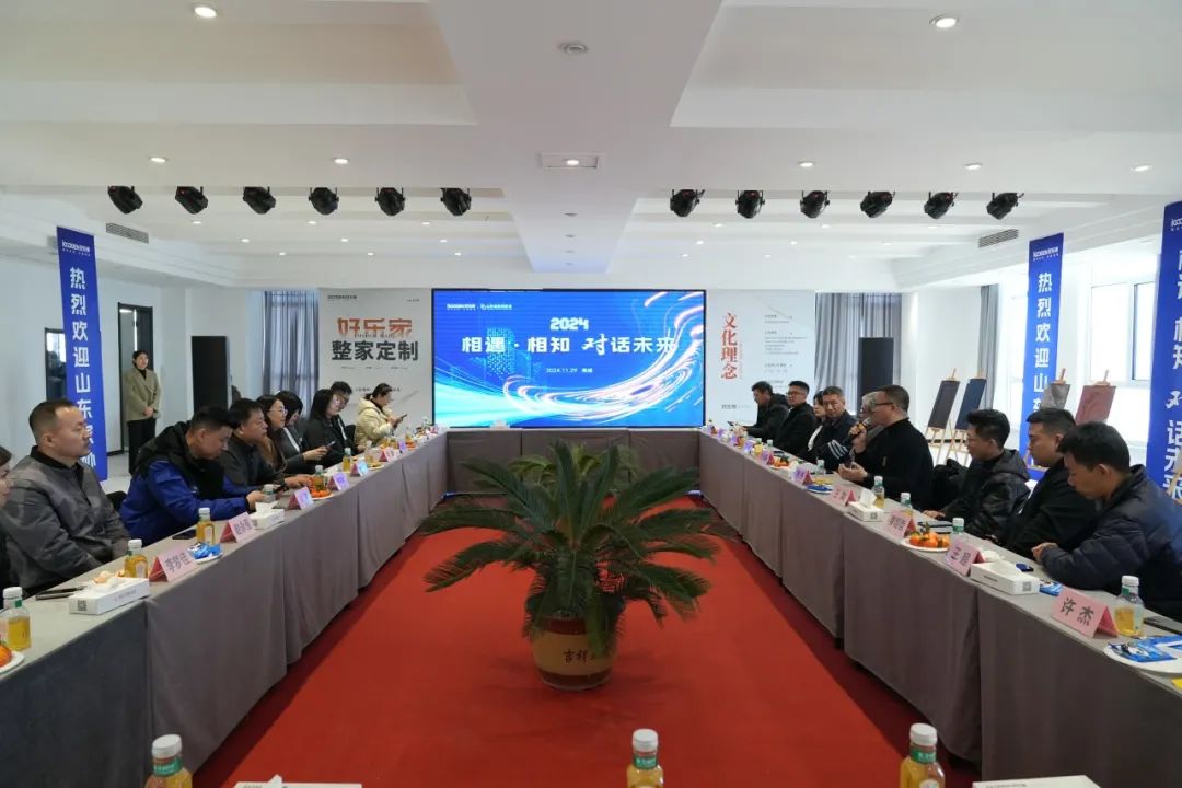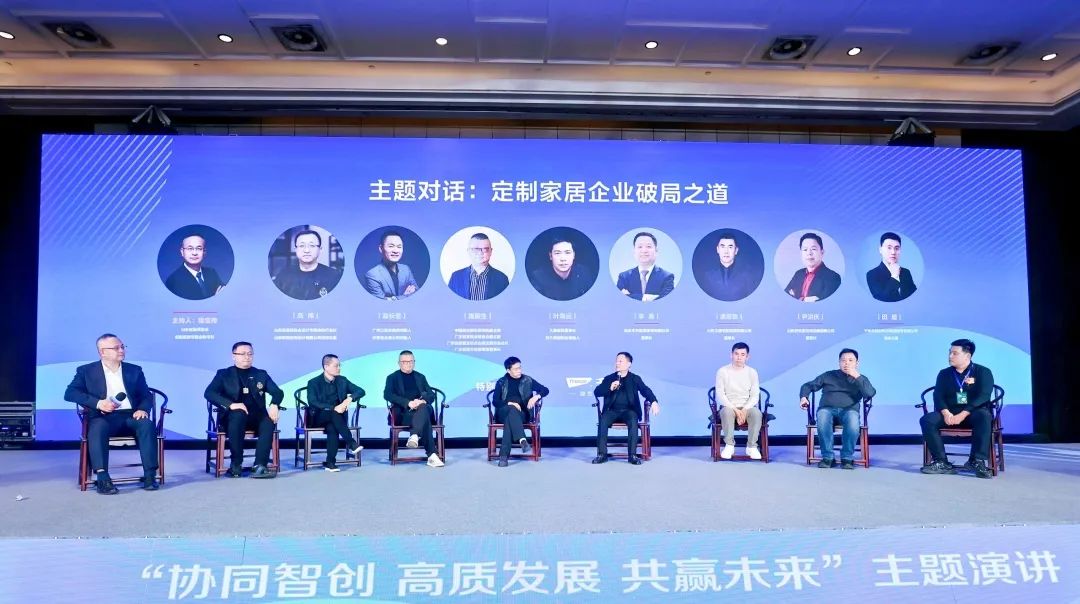 山东省家具协会设计专业委员会执行会长、山东和尧空间设计创意总监高伟,广州三粒米教育创始人、好美宅全案公司创始人翁长誉,中国高定俱乐部创始副主席、广东省家居业联合会高定委员会会长、广东蓝谷定制有限公司董事长施振生,久典家居董事长、双久集团联合创始人叶海云,尚品本色智能家居有限公司董事长李鑫,山东大唐宅配家具有限公司董事长唐增胜,山东好乐家住宅设施有限公司董事长尹洪庆,千年舟新材料科技集团股份有限公司高级总监田超,围绕 “定制家居企业破局之道”展开讨论,山东省家具协会定制家居专委会秘书长徐宝传主持对话,八位对话嘉宾分别从市场趋势与消费者需求、设计创新、数字化转型与智能化制造、供应链管理、品牌建设与市场推广等方面进行了深入探讨。