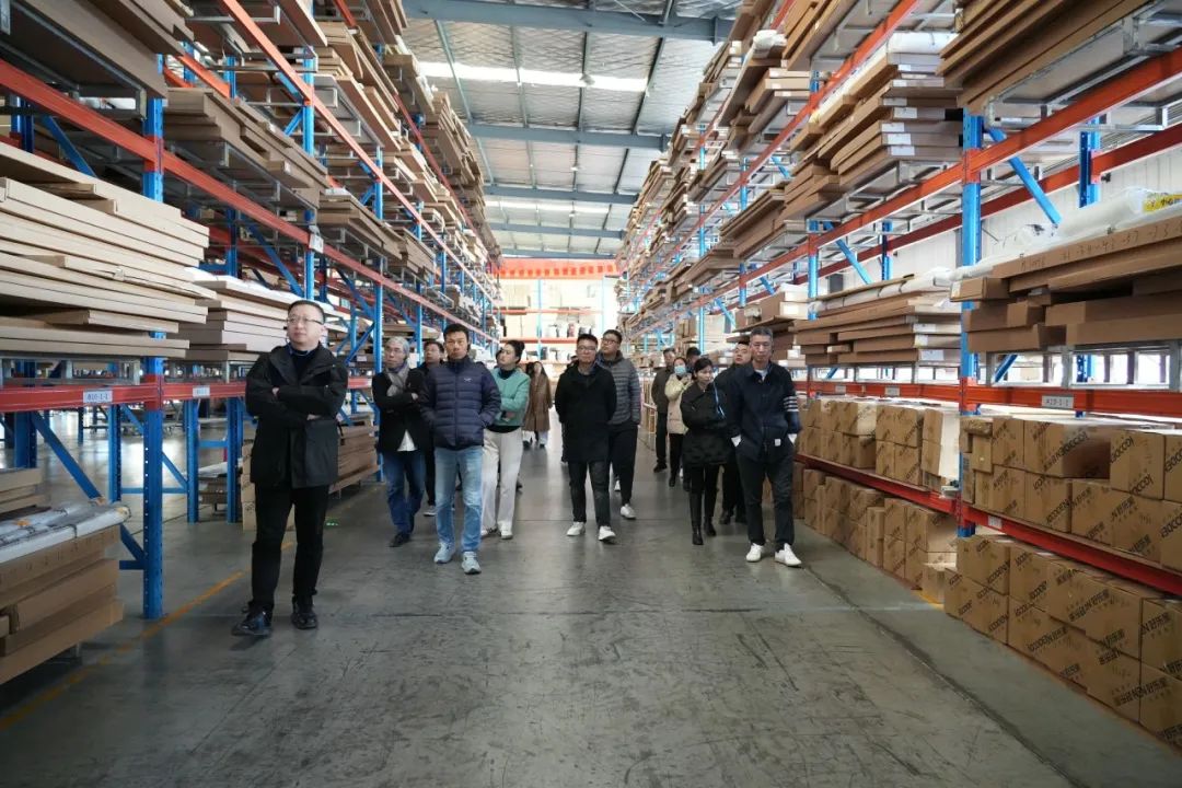 此次考察团一行深入好乐家禹城工厂车间,实地了解了企业的生产流程、技术创新和产品品质。随后,考察团与好乐家董事长尹洪庆、创始人张秋妮等高层领导进行了深入的座谈交流。双方就家居定制行业的现状、未来发展趋势以及合作机会等话题展开了热烈的讨论,共同探讨了如何推动山东省家居设计行业的创新与发展,为消费者提供更加优质、时尚的家居产品和服务。