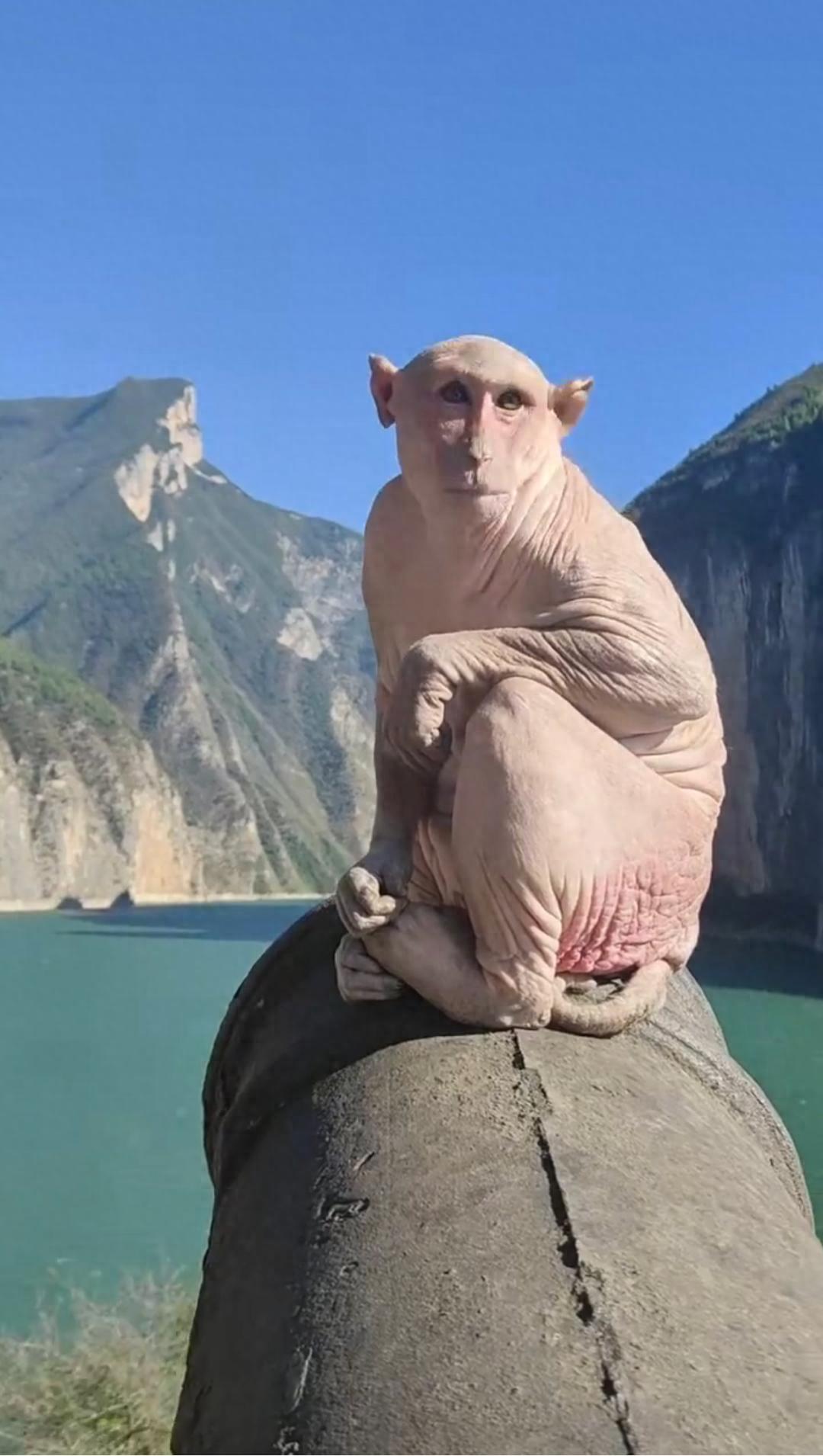 景区工作人员马女士告诉记者,这只“无毛猴”是白帝城瞿塘峡景区的一只猴子,因为得了皮肤病,出现掉毛情况,很多网友觉得新奇,拍着拍着就把它拍成“网红”了。
