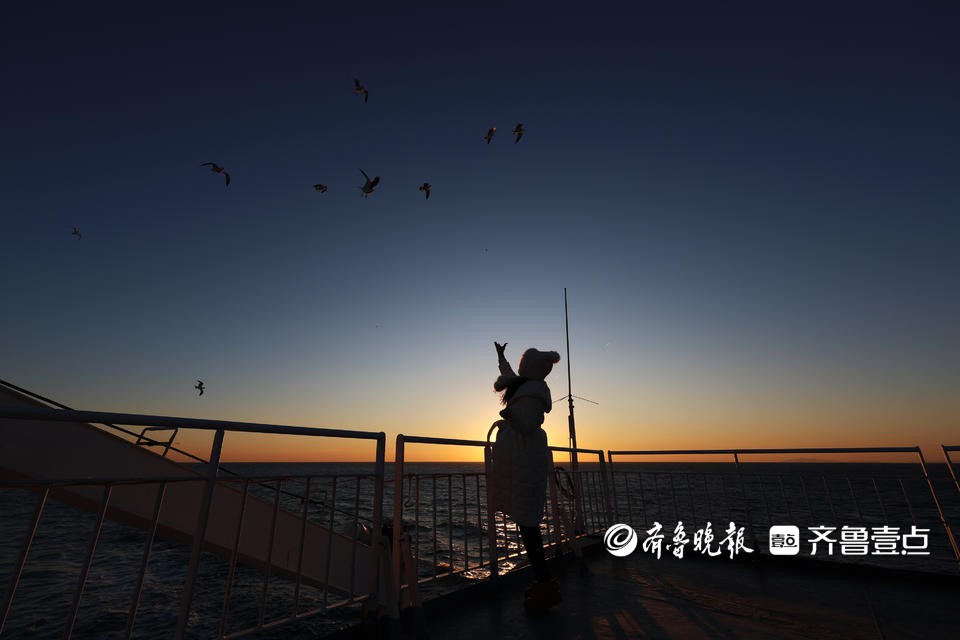 “这是我们第一次坐船,之所以选择这艘船也是为了看海上日落,大海的日落多浪漫啊,这是我们期待许久的,很壮观很震撼,朋友圈都发了好几条了。”在甲板看完日落后,来自枣庄的旅客朱一鸣和邱教朕兴奋不已地分享了自己的感受。