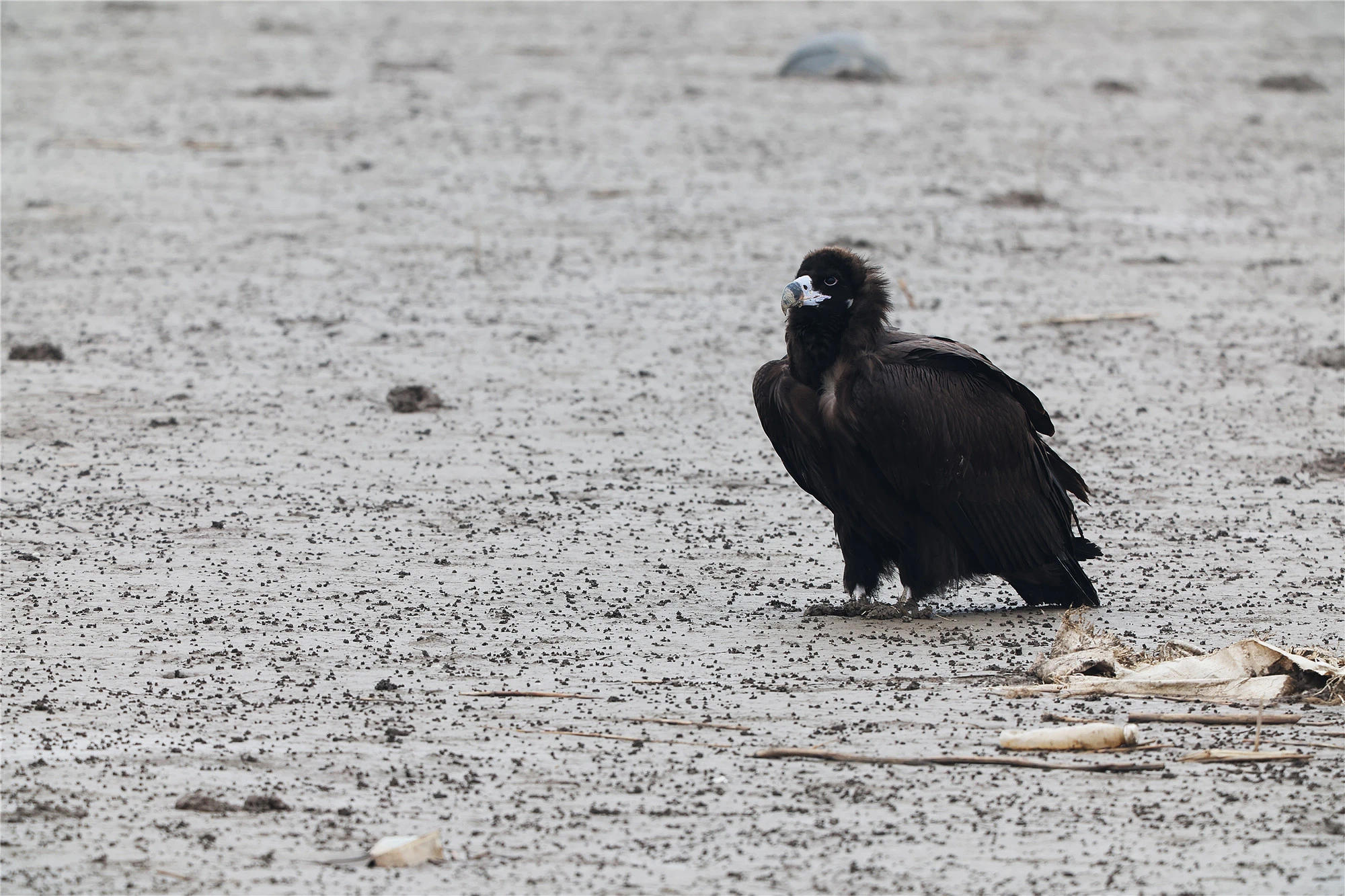 保护区监测人员在滩涂上发现秃鹫。本文图片均为 崇明东滩保护区 图