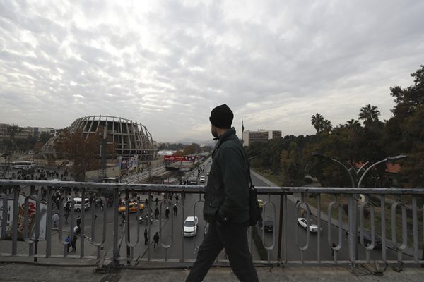 12月7日,一名男子走在叙利亚首都大马士革一座天桥上。新华社