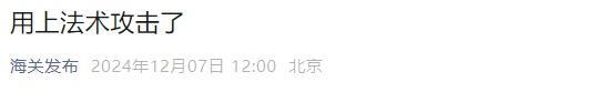 12月8日,“海关发布”微信公众号发布文章《用上法术攻击了》,引发众多网友关注。