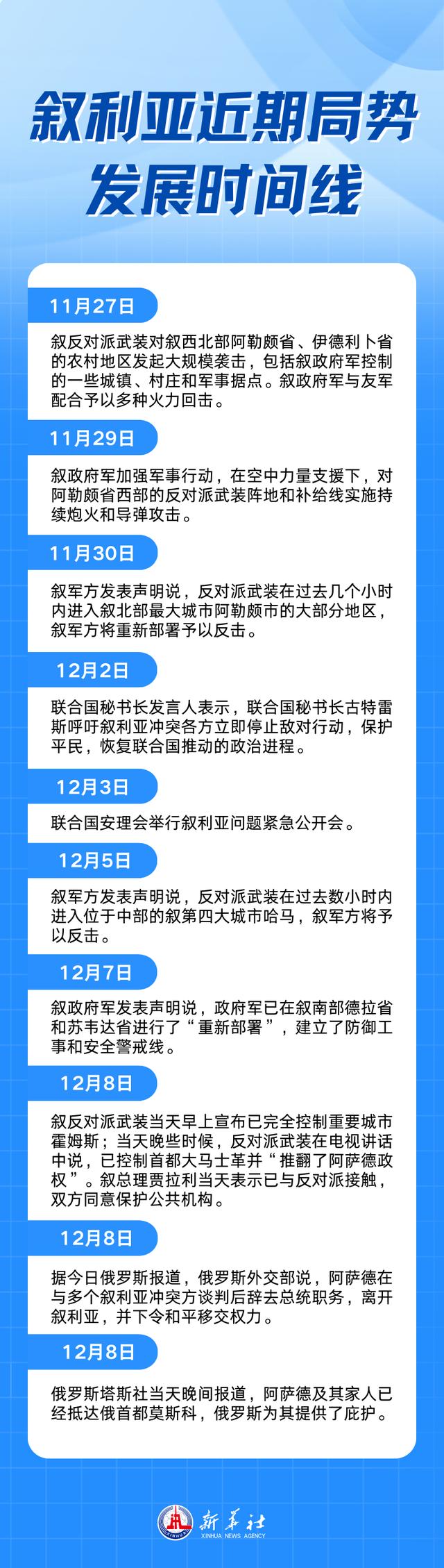 时间线|叙利亚局势突变12天 新华社 2024-12-09 5091 11月底以来,叙利亚局势突变,反对派武装快速占领多个重要城市,并于8日宣布控制首都大马士革。以下是近期叙局势发展重要节点的时间线: (新华社) 责任编辑:赵世峰