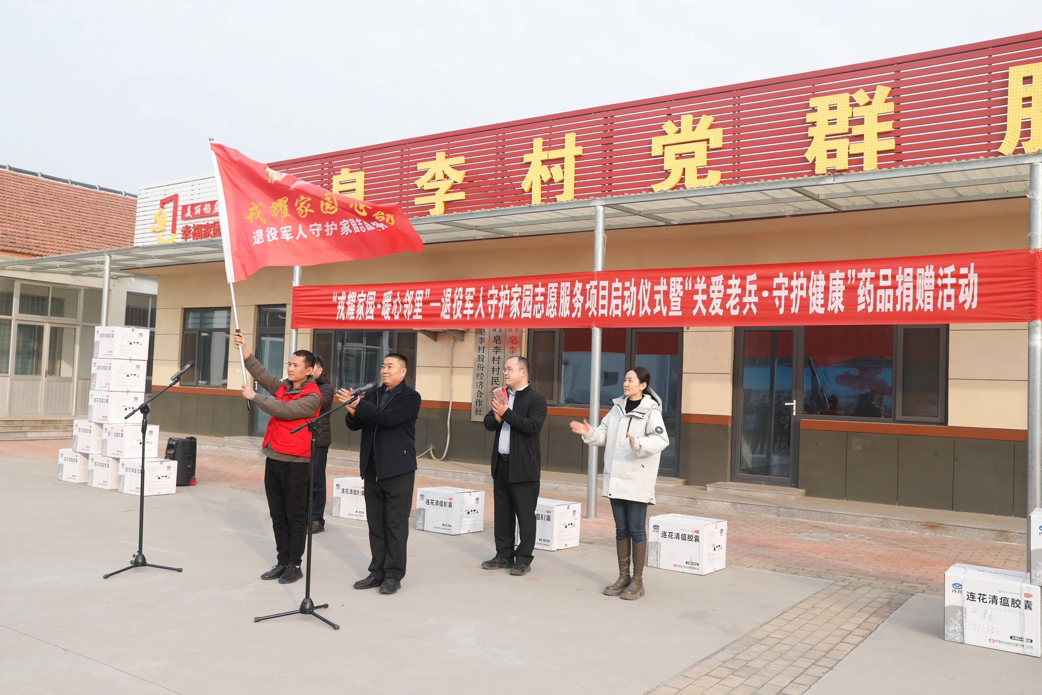 为传承人民军队优良作风,积极践行为民服务理念,引导退役军人投身基层治理,12月6日下午,广饶县“戎耀家园·暖心邻里”退役军人守护家园志愿服务项目启动仪式暨“关爱老兵·守护健康”药品捐赠活动在市退役军人事务局帮扶村—广饶县稻庄镇皂李村举办。广饶县退役军人事务局和稻庄镇分管领导、各镇街退役军人服务站站长、“戎耀家园·暖心邻里”志愿服务项目负责人及志愿者代表共40余人参加。