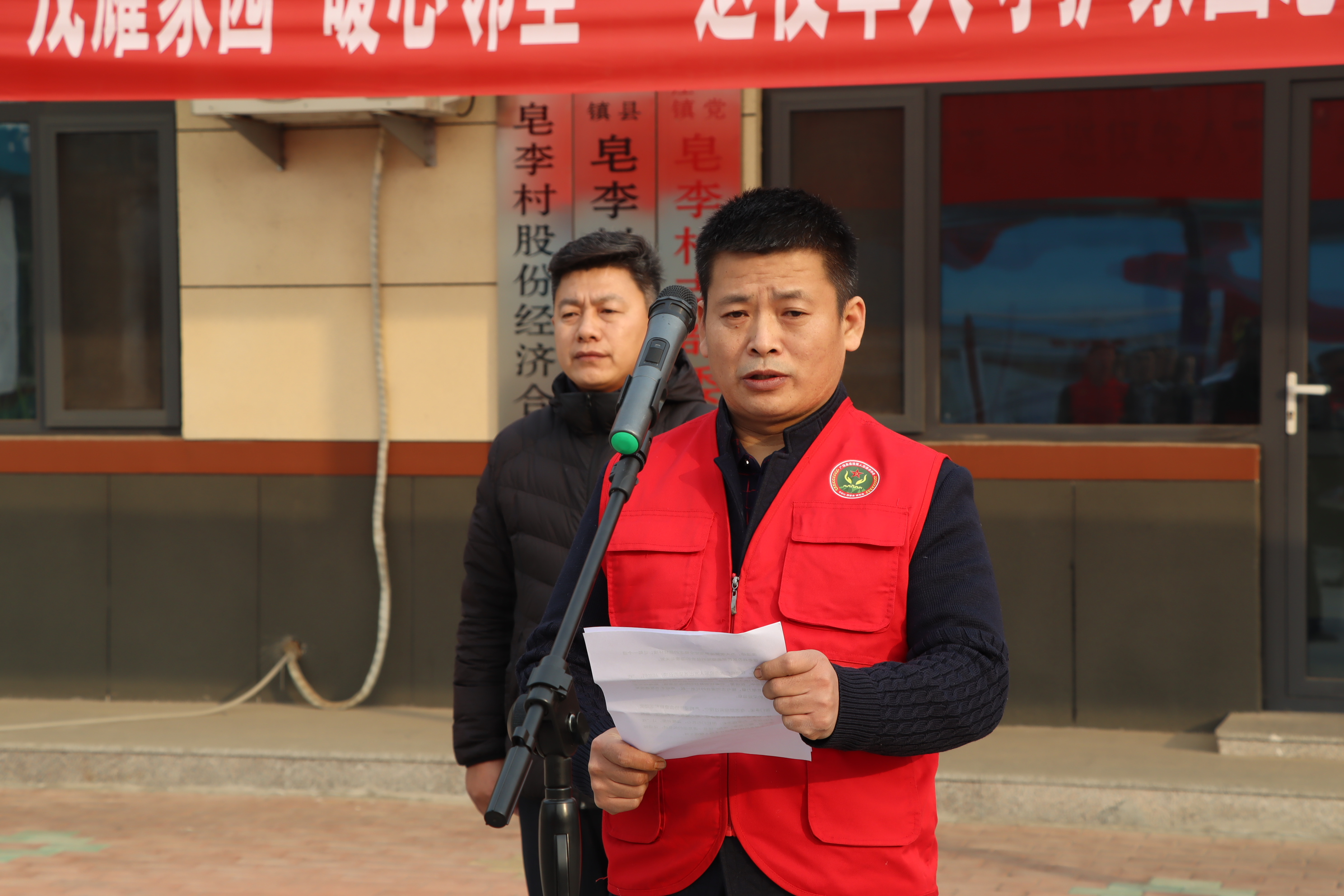 广饶县退役军人志愿者协会马文武作为退役军人代表,就“戎耀家园·暖心邻里”退役军人守护家园志愿服务项目作表态发言,倡议广大退役军人积极投身“戎耀家园·暖心邻里”志愿服务项目,用我们的双手,为家园添彩;用我们的真心温暖邻里。