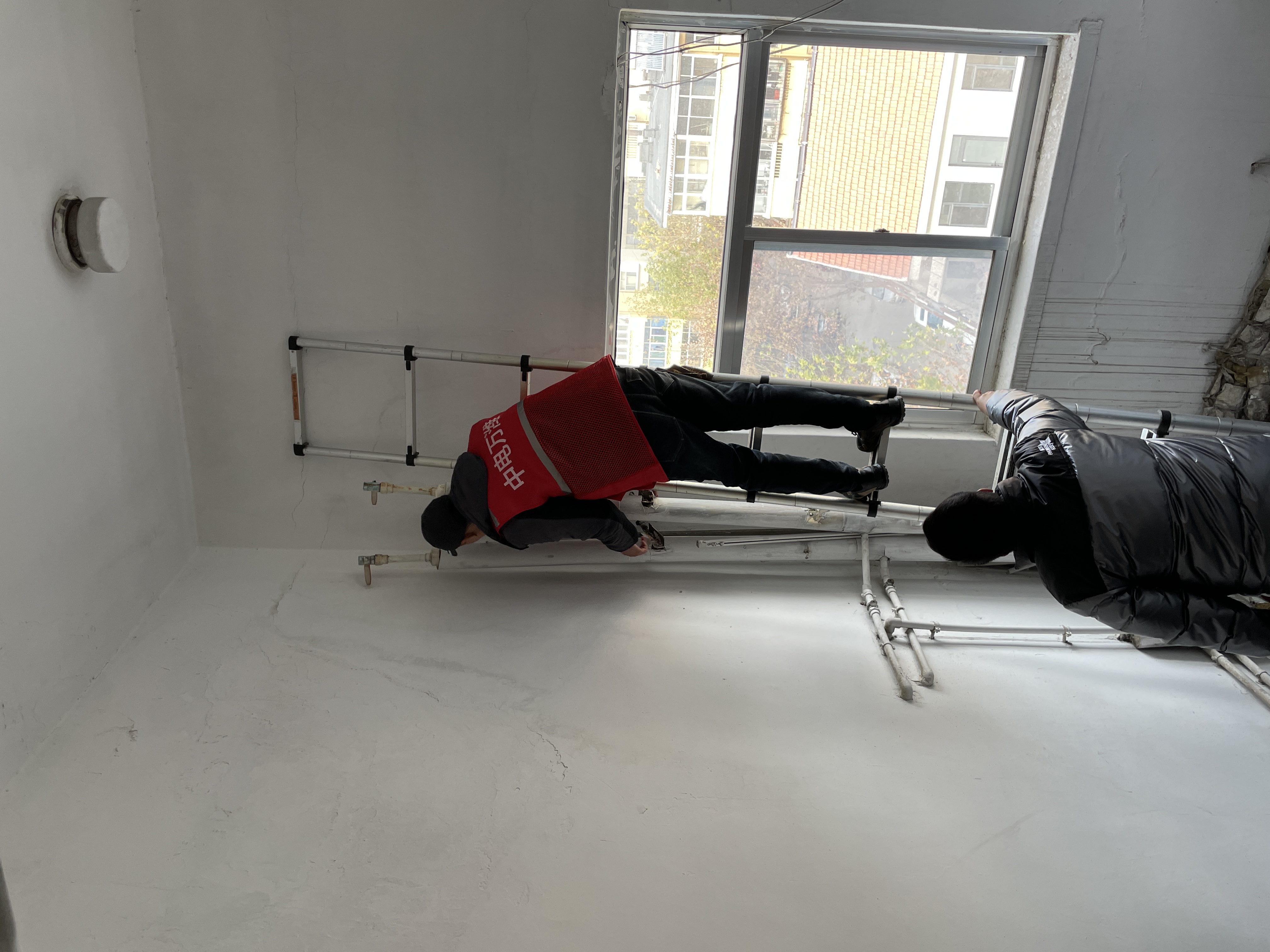 检查完楼道里的管道还得进张姨家里检查暖气片,家里楼道里,丁凯和同事来回跑了好几趟。不到半个小时的时间,丁凯三次被溅水,被溅了水他也顾不上擦,抹把脸就跑向门口朝着同事喊“把阀门关上”。