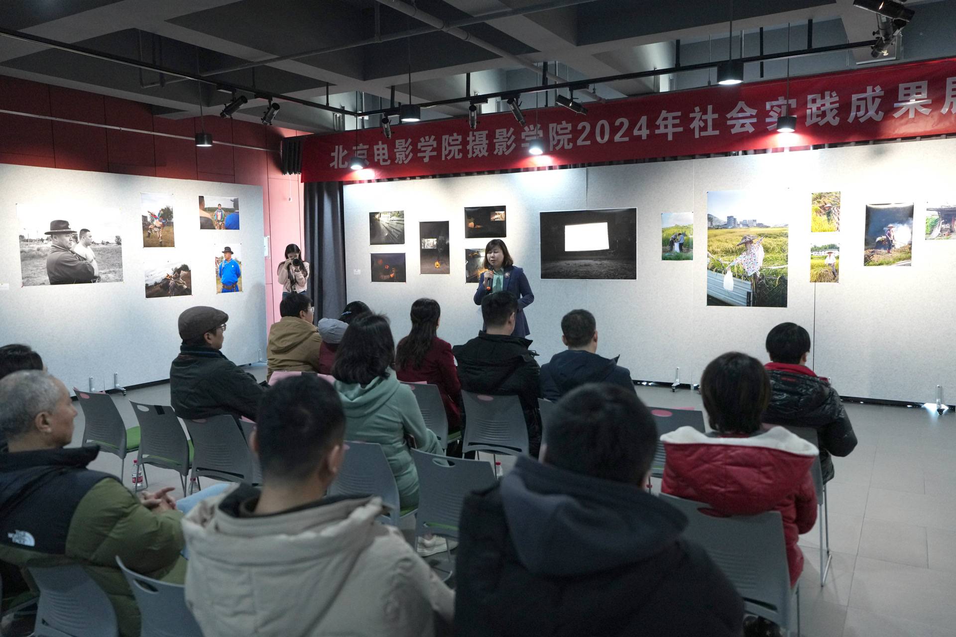 12月11日上午,北京电影学院摄影学院2024年社会实践成果展在怀柔校区开幕。展览以“青振乡建”为主题,集中展示了摄影学院23级本科图片班与商业班30位同学社会实践的作品,作品约200幅,展示了当代大学生对于“乡村振兴”的真实观察以及深入思考。