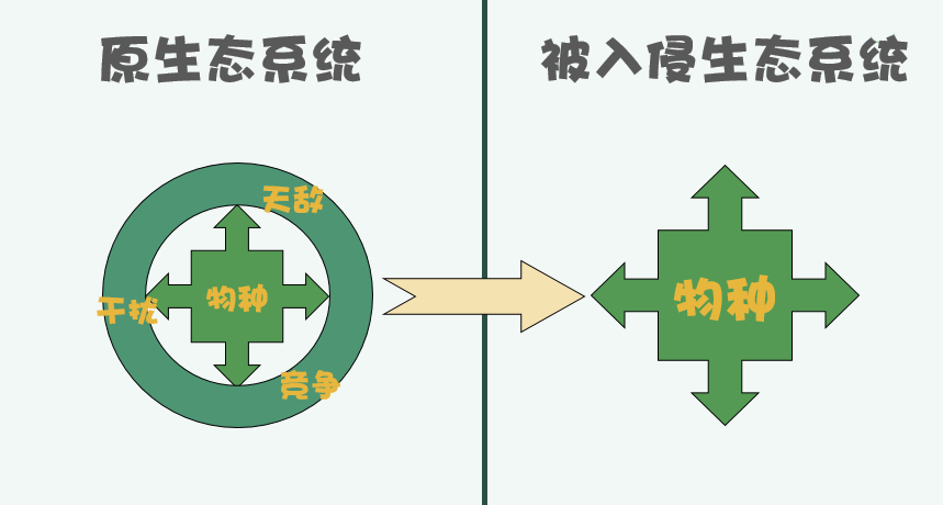 一个外来物种的到来,很有可能因为新环境中没有相抗衡或制约它的生物,最终成为真正的入侵者,改变或破坏当地的生态环境,严重破坏生物多样性。