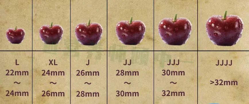 看等级。进口车厘子的分级普遍是以果粒直径大小作为判断标准的,使用“ROW”和“J”来区分。以“ROW”标准划分的车厘子,数字越小,果实越大;以“J”为标准的,“J”越多,果实越大。