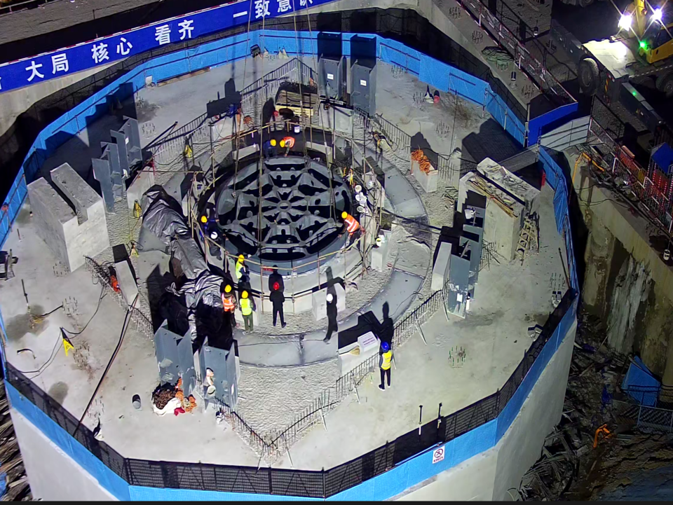 据了解,直径为6米的转体球铰,是转体的核心“机关”。下球铰重量达34吨,采用400吨吊车吊装,施工难点在于安装精度和质量控制,通过使用定位螺栓与型钢支架、定位辅助支撑装置相结合,高精度全站仪和电子水准仪循环复测的方式,实现了安装后球铰顶面高差在0.5毫米以内,远高于设计标准。项目团队对球铰下混凝土密实性采用医学“内窥镜”法进行监测,确保混凝土密实度,并加强过程中工序控制,保证了球铰的安装精度和质量大于设计标准。