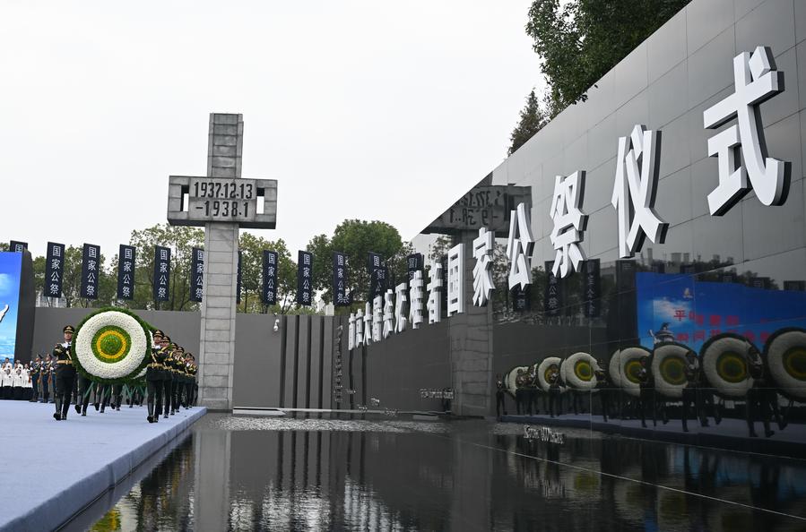 China holds its 10th national memorial ceremony for the Nanjing Massacre victims at the Memorial Hall of the Victims in Nanjing Massacre by Japanese Invaders in Nanjing, capital of east China's Jiangsu Province, Dec. 13, 2023.