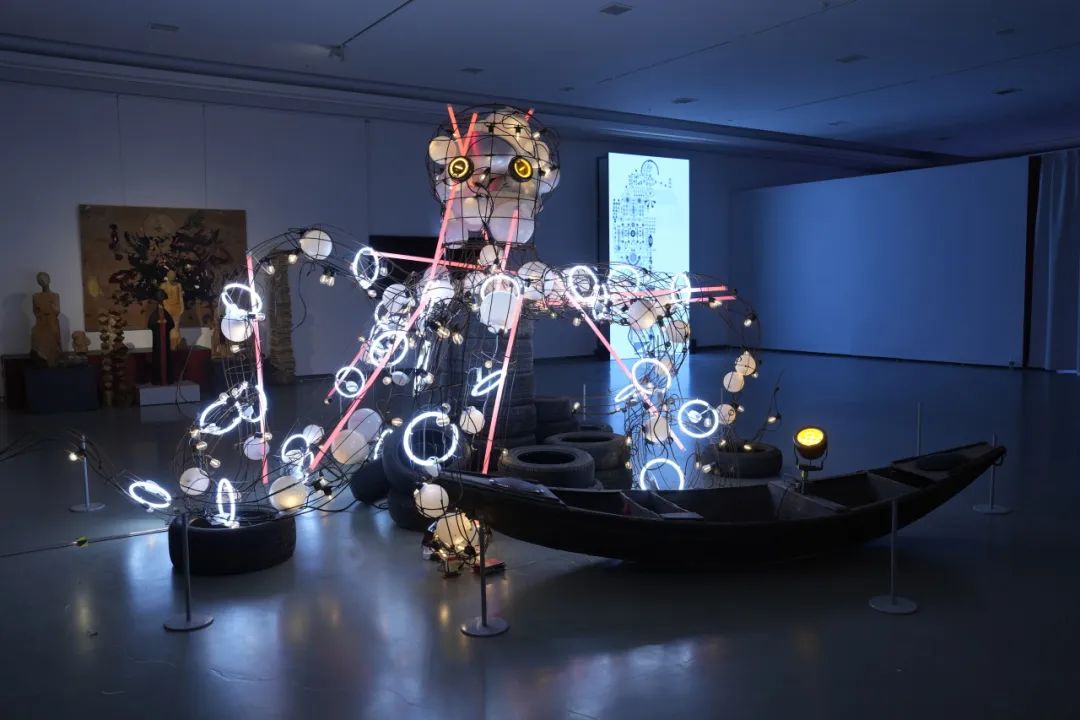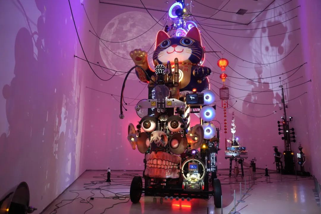 中国人民大学、济南市美术馆(济南画院)共同创作的公共艺术作品《往昔·今昔》,带观众进入百年济南老火车站迎来送往的情感记忆,同时俏皮可爱的“济南小妮儿”(AI生成虚拟人)与观众进行有趣互动和对话。围绕展览主题,艺术家们在自己的创作领域进行全新的创作,例如唐晖《庄严的机器》,高磊《12h&12h》,李琳琳《山寺桃花始盛开》......部分作品根据济南国际双年展的场地进行量身定制,由马良、孙昊、郭鸿洋组成的艺奇客创作团队带来的《妄想代理人》,在特定的展览空间中,进行艺术素材的再组合。