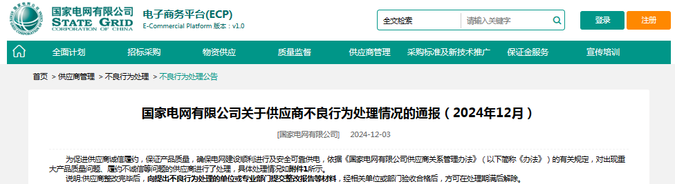 近日,国家电网有限公司发布了供应商不良行为处理情况的通报(2024年12月),对出现重大产品质量问题、履约不诚信等问题的供应商进行了处理。其中,中国通信建设集团旗下的中国通信建设第二工程局有限公司(下称“中国通建二局”)、中国通信建设第三工程局有限公司(下称“中国通建三局”)上榜。