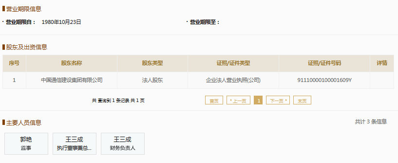 中国通建二局、中国通建三局均由中国通信建设集团有限公司全资持股,中国通信建设集团注册资本54967.63万元人民币,法定代表人唐令华。
