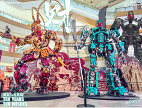 从高迪艺术展中国华北地区商业首展、白夜童话“祥鹿”全国首展、柏拉兔全国首展到“千里江山 如虎添翼”全国首展,领秀城贵和购物中心携手国际性艺术IP,将商业与艺术跨界融合,成功塑造了一座殿堂级的艺术之城,引领了城市人文思潮。其中,2020年以80后新锐艺术家贾晓鸥的白夜童话系列作品为IP打造的“白夜童话”主题展,不仅集美感、治愈、梦幻于一体,还荣获了第二届中国商业企划节“金灯奖·卓越品质奖”,充分证明了购物中心在艺术创意方面的卓越实力。12月14日,领秀城贵和十周年庆典之际,携手中国知名机甲艺术家毕横,带来“十年十愿-Ten years Ten wishes”大型装置艺术展,以8米高“阿潘达”为代表的十件机甲瑞兽艺术品硬核登录,带来传统文化与未来科技的赛博朋克美学之潮。