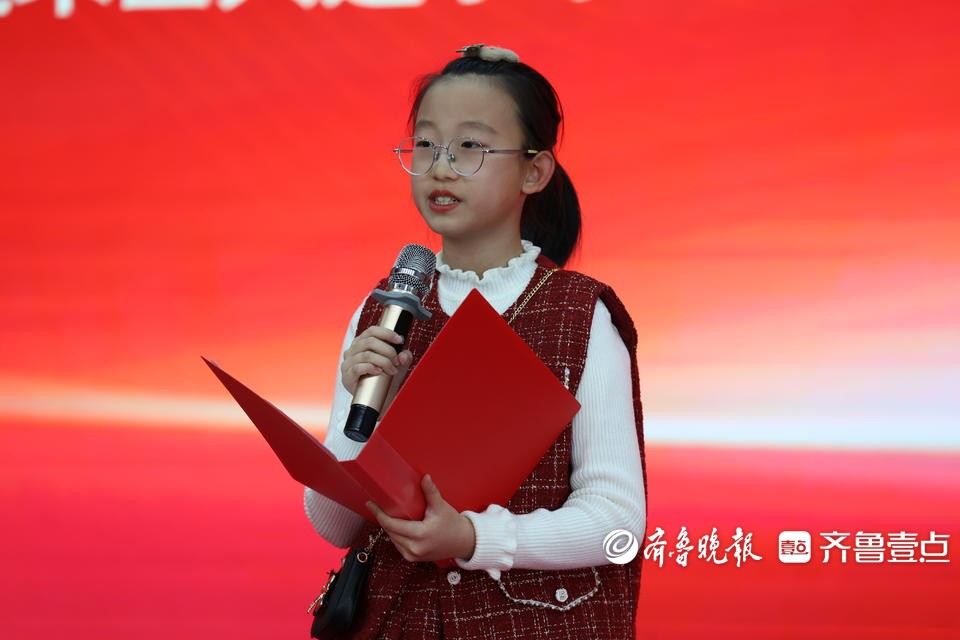 一等奖获奖代表、只楚小学褚一诺分享作品《我与祖国共成长》。(吕奇 摄)