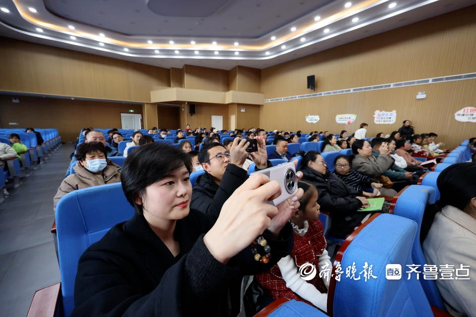 山东省作协副主席、烟台市作家协会主席,著名作家王秀梅为现场师生及家长上文学课。(吕奇 摄)