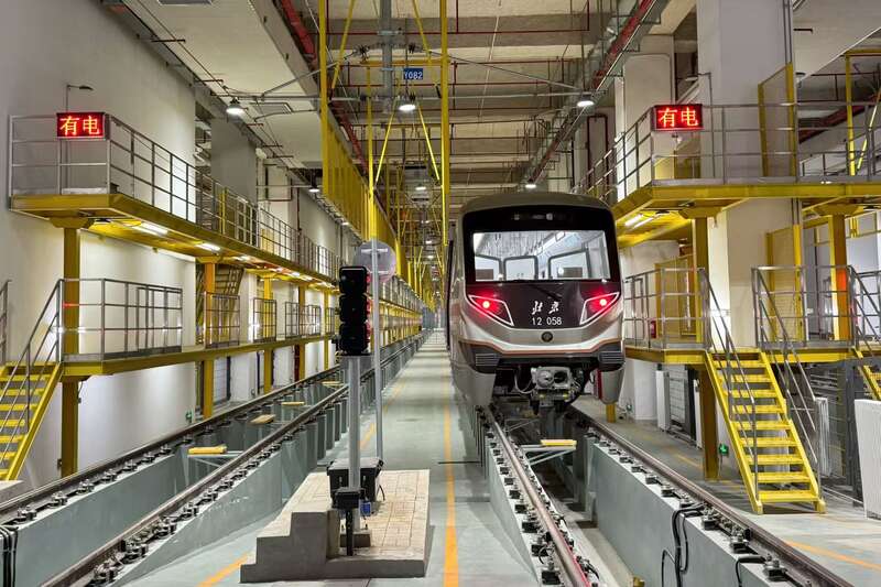 12月14日,在北京市朝阳区东坝车辆段,记者看到工作人员正就开通前最后一天进行紧张的准备工作。